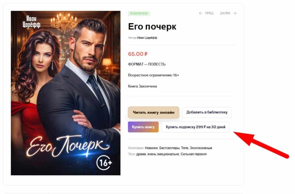 1. В карточке книги найдите кнопку «Купить подписку 299 ₽ на 30 дней»