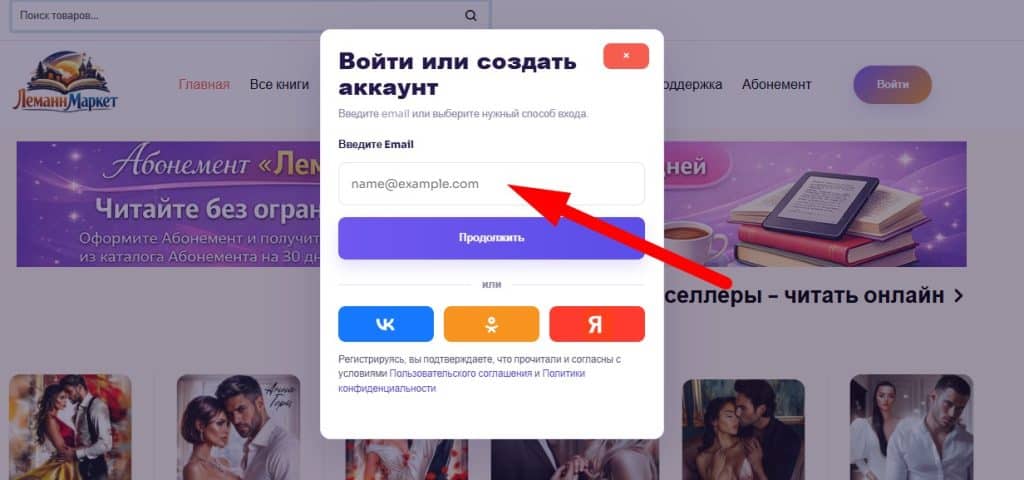 1. В открывшемся окне найдите поле «Введите e-mail»