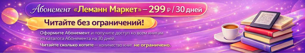 Как это работает: — Оплачиваете 299 ₽ и сразу получаете доступ ко всем книгам — Читаете любые книги сайта ЛеманнМаркет без ограничений в течение 30 дней — Абонемент продлевается автоматически каждые 30 дней — Списание происходит за 24 часа до окончания текущего периода — Отменить автопродление можно только за следующий месяц через Личный кабинет (не позднее чем за 24 часа до окончания периода).